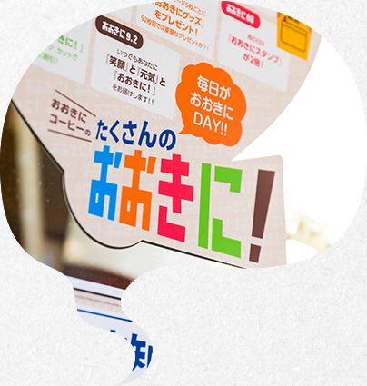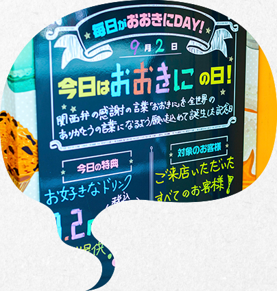 おおきにカラーのめっちゃ大きい”おおきに”が目印!